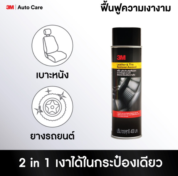 AC61-3M ผลิตภัณฑ์เคลือบเงาเบาะหนังและยางดำ ชนิดอัดกระป๋องความดัน ขนาด 400ml. PN39041A + 3M Cream wax ผลิตภัณฑ์แว๊กซ์เคลือบเงาสีรถ 220 กรัม