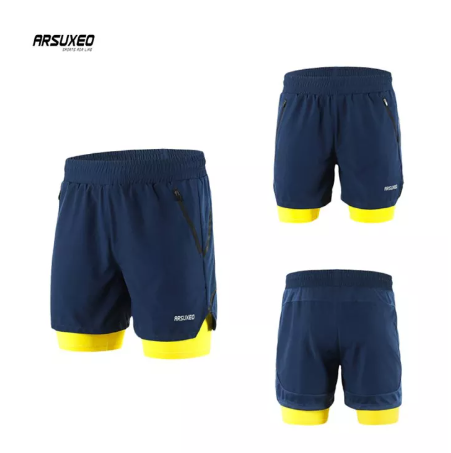 กางเกงออกกำลังกายขาสั้น วิ่ง/ฟิตเนส 2IN1 Doubel Layer มีซับด้านในและกระเป๋าซิปด้านข้าง Brand : Arsuxeo ขนาดสินค้า (Asia size) : M / L / XL / 2XL / 3XL สีของสินค้า : ดำ / น้ำเงินเหลือง / เทา เหมาะสำหรับ : สวมใส่ออกกำลังกายทุกประเภท เช่น ฟิตเนส วิ่ง มาราธอน โยคะ ยิม บาสเกตบอล แบดมินตัน ปั่นจักรยาน และอื่นๆ ฯลฯ คุณสมบัติพิเศษ Quick Dry / Breathable ผลิตจากวัสดุคุณภาพดี โดยโรงงานที่ได้มาตรฐาน คุณภาพส่งออกยุโรป มีช่องกระเป๋าซิปด้านข้าง 2ข้าง (ซ้าย/ขวา) 2IN1 Doubel Layer มีซับด้านในกางเกง เพื่อความคล่องตัวในการออกกำลังกาย รอบเอวยางยืดมีเชือกผูก เพิ่มความกระชับ มั่นใจทุกทุกท่วงท่าทำให้เคลื่อนไหวได้อย่างมีประสิทธิภาพสูงสุด สวมใส่สบายแห้งไว Dri Fit ช่วยดูดซับเหงื่อและแห้งเร็ว เนื้อผ้านุ่มลื่น ลดแรงเสียดทานของต้นขา มีแถบสะท้อนแสง / Reflective Logo เพื่อความปลอดภัยในยามค่ำคืน เนื้อผ้า : 95%Polyester 5%Spandex ขนาดของสินค้า ก่อน-หลังยืด (ส่วนสูง/นน.โดยประมาณของผู้สวมใส่) M รอบเอว 28"-34” / ความยาว : ด้านนอก14.5” ซับด้านใน18” (เหมาะกับความสูง/น้ำหนัก 150-165CM / 45-65KG) L รอบเอว 30"-36” / ความยาว : ด้านนอก15” ซับด้านใน18” (เหมาะกับความสูง/น้ำหนัก 165-175CM / 65-75KG) XL รอบเอว 32"-38” / ความยาว : ด้านนอก15.5” ซับด้านใน18” (เหมาะกับความสูง/น้ำหนัก 170-180CM / 70-80KG) 2XL รอบเอว 34"-40” / ความยาว : ด้านนอก16” ซับด้านใน18" (เหมาะกับความสูง/น้ำหนัก 175-185CM / 75-85KG) 3XL รอบเอว 36"-42” / ความยาว : ด้านนอก16” ซับด้านใน18” (เหมาะกับความสูง/น้ำหนัก 180-190CM / 85-95KG) (**อาจจะมีการคลาดเคลื่อนเล็กน้อยจากการวัด) **ผู้ที่สวมใส่ไซส์ S หากต้องการสวมใส่เลือก M ได้เช่นกันค่ะ มีเชือกผูกที่เอว ขอบยางยืดกระชับ** แพ็คเกจรวม : 1x กางเกงขาสั้นออกกำลังกาย