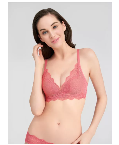 เสื้อชั้นใน ไม่มีโครง เต็มคัพทรงตกแต่งด้วยผ้าลูกไม้ยืดหยุ่นด้านหน้าคัพทรง ช่วงลำคอ และฐานขอบทรงให้ลุคเฟมินีนคัพทรงแบบ 4D ยืดหยุ่นทุกทิศทาง เข้าได้กับทุกสรีระ คัพทรง 4D ยืดหยุ่นทุกทิศทาง รับกับเต้าทรงแบบดีฟวีคัพทรงโค้งรับพอดีกับทรงไม่กดทรงช่วยยกกระชับทรง อินเนอร์สลิงด้านใน 2 ชิ้น ช่วงล่างของขอบทรง และด้านข้างคัพทรงช่วยกระชับทรงให้อยู่กึ่งกลาง ให้อกชิดสวยเสมือนชุดชั้นในแบบมีโครง สายบ่าออกแบบซ่อนตะขอเกี่ยวไว้สามารถปรับเป็นแบบสายไขว้ได้ และช่วยกระชับสำหรับคัพทรงใหญ่