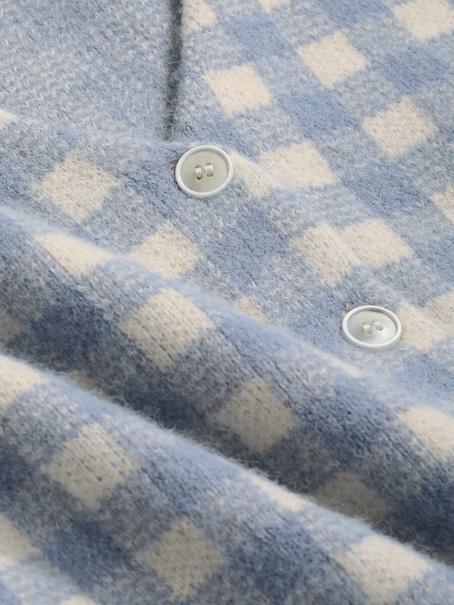 DAZY คาร์ดิแกน ลายกิงแฮม ไหล่ตก i-39