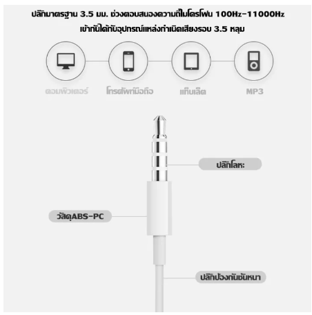 • อินเอียร์ พร้อมแผงควบคุมอัจฉริยะ และไมโครโฟนในตัว ใช้กับช่องเสียบขนาด