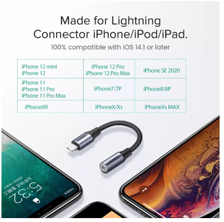 //UGREEN 3.5mm plug to Lightning cable made from original Apple chip provides safe and stable audio transmission.