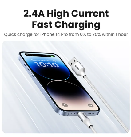 ข้อมูลเฉพาะของ UGREEN MFI Charging Cable iPhone Charger Apple Charging Cable for iPhone 14 13 Pro Max iPhone 14 Plus 2.4A Fast Charging Lightning (White)Model: 60161