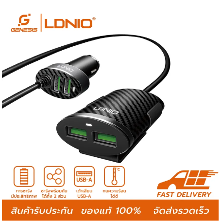 • LDNIO C-502 เป็นที่เสียบช่องจุดบุหรี่ในรถยนต์ เป็นที่ชาร์จแบต มีช่องUSB 4 ช่อง สามารถชาร์จอุปกรณ์4เครื่องในเวลาเดียวกัน