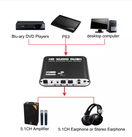 ข้อมูลเฉพาะของ 5.1 Channel Audio Decoder DTS Digital Surround Sound HD Player Converter Amplifier Optical Coaxial Analog Portable