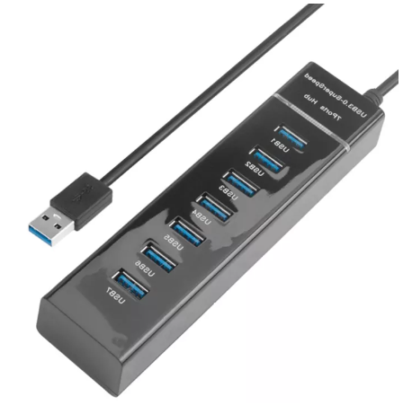 • atures:compatible with your Windows, Mac OS or Linux systems.1 upstream and 4 downstream USB port.7-port USB 3.0 hub with super speed transfer rate up to 5Gbps.Backwards compatible with USB 2.0 & 1.1.Supports hot swap.Built-in over-current protection to protect both connected devices and the hub itself from unforeseen power surges.Plug and Play, no driver needed.Light weight, small size, easy to carry.Specifications: