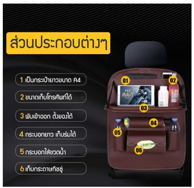 Place for placing or multipurpose luggage at the back of the car seat Increase storage space in the car, has a lot of storage, convenient to use And help organize in the car It very good