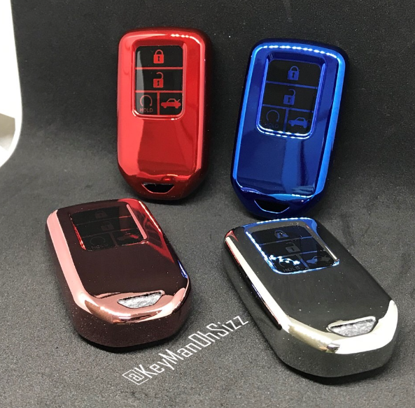 เคสกุญแจรีโมทรถยนต์ HONDA (TPU Key Cover with PC Push button Guard) Honda Key Sets Model ACCORD, CR-V, CIVIC, CIVIC HATCHBACK, CITY ปุ่มสมาร์ทคีย์ Smart Key 10 Generationแบบ 3, 4 และ 5 ปุ่ม ใช้ได้กับกุญแจ Honda ทุกรุ่น กรอบ เคสกุญแจรีโมทรถยนต์ Smart Key Honda ออกแบบให้เข้ารูปพอดีดูสวยงาม ทำด้วยวัสดุคุณภาพด้วย TPU (Thermoplastic Polyurethanes) ทำให้รีโมทรถยนต์คุณใหม่ตลอดเวลา ป้องกันการกระแทกได้เป็นอย่างดี ช่วยถนอมปกป้องไม่ให้รีโมทเป็นรอยขีด ข่วน หรือกระแทกเสียหาย, กันคราบสกปรกหรือน้ำเข้า, กรอบทีพียูจะมีการเคลือบมันสีสวยงาม สามารถเช็ดหรือทำความสะอาดได้ง่าย ผิวเรียบเนียนดูดีมีระดับ พร้อมด้วยการ์ดกันกระแทกและปกป้องจากแสงแดด ปุ่มสมาร์ทคีย์ (PC Push button Guard) ทำด้วยวัสดุคุณภาพ PC (Poly carbonate) น้ำหนักเบา แข็งแรง มีให้เลือก 4 สี สีแดง (Vitality Red) สีน้ำเงิน (Charm Blue) สีชมพู (Cute Pink) สีเงิน (Electric Light Silver)