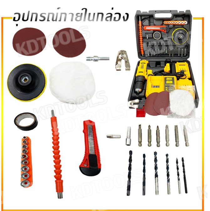 สว่านตัวใหม่มอเตอร์ใหญ่กว่าเดิม BKK 148V แรงกว่าเดิม เจาะไม้ ปูน เหล็ก เป็นได้ทั้งสว่าน และ ไขควง แบตเตอรรี่ 148 v 2 ก้อนพร้อมกล่องอุปกรณ์ มีไฟฉายเวลาทำงานให้ที่มืด #สว่านไร้สาย #สว่าน #เครื่องมือช่าง
