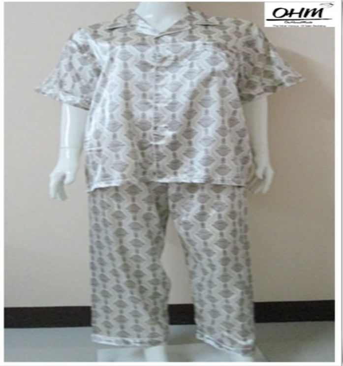 เสื้อแขนสั้น ความกว้างรอบอกประมาณ 46 นิ้ว ช่วงไหล่ด้านหน้ากว้างประมาณ 19 นิ้ว แขนเสื้อยาว 25 ซม. เสื้อยาวประมาณ 72 ซม. มีกุ้นริมคอปก ตัวเสื้อ และชายกางเกง