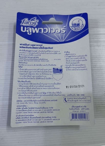บลูพาวเวอร์ Farcent ขนาด 65 กรัมใช้สำหรับขจัดคราบในโถสุขภัณฑ์ มี 2 กลิ่นให้เลือก แบบไม่มีกลิน และกลิ่นลาเวนเดอร์ เมื่อใส่ไปในถังน้ำแล้ว น้ำที่โถสุขภัณฑ์จะเป็นสีฟ้า สีสวย สะอาดตา คุณภาพดี ราคาพิเศษ