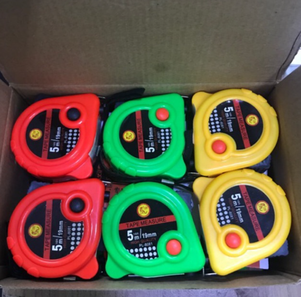 ตลับเมตร ขนาด 5 เมตร คัวตลับทำจากพลาสติก วัดได้ทั้งแบบมิลและแบบนิ้ว สายวัดยาว 5 เมตร สามารถล็อคได้ คุณภาพดี ราคาไม่แพง สั่งซื้อ 12-35 ตัว @ 22 บาท / 36-119ตัว @ 21 / 120 ตัวขึ้นไป @20บาทค่ะ
