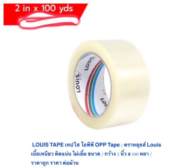 LOUIS TAPE เทปใส โอพีพี OPP Tape ตราหลุยส์ Louis เนื้อเหนียว ติดแน่น ไม่เยิ้ม ขนาด / กว้าง 2 นิ้ว x 100 หลา / ลดราคา ลดกระหน่ำ เหนียวที่สุด แน่นที่สุด ราคาถูกที่สุด ใน Shopee ราคาส่ง ราคา ต่อม้วน