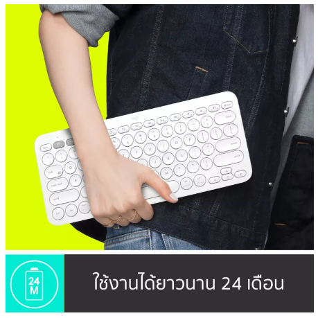 Logitech K380 Multi-Device Wireless Keyboard with Bluetooth (คีย์บอร์ดไร้สายบลูทูธ พกพาสะดวก คีย์แคปภาษาอังกฤษ ฟรีสติกเกอร์ภาษาไทย)