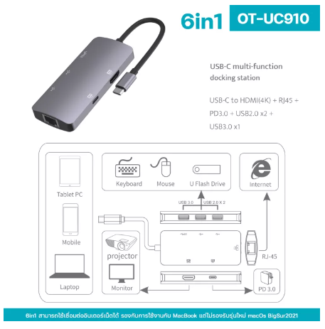 • * 6in1 สามารถใช้เชื่อมต่ออินเตอร์เน็ตได้ รองกับการใช้งานกับ for MacBook แต่ไม่รองรับรุ่นใหม่ for macOs BigSur2021 !!