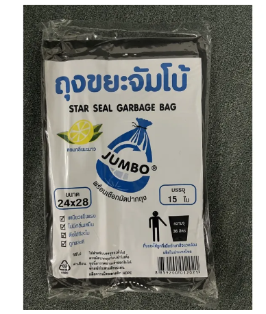 - ถุงขยะจัมโบ้ ถุงดำ ถุงขยะ เกรดA พร้อมเชือกมัดปากถุง หอมกลิ่นมะนาว JUMBO Garbage Bag ชนิดบางเหนียว