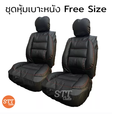 RE64-ชุดหุ้มเบาะรถยนต์ แบบสวมทับ Free Size สีดำ(ด้ายแดง) ชุดหุ้มเบาะรถ ชุดคู่หน้า ใช้ได้ทั้งรถกระบะและรถเก๋ง