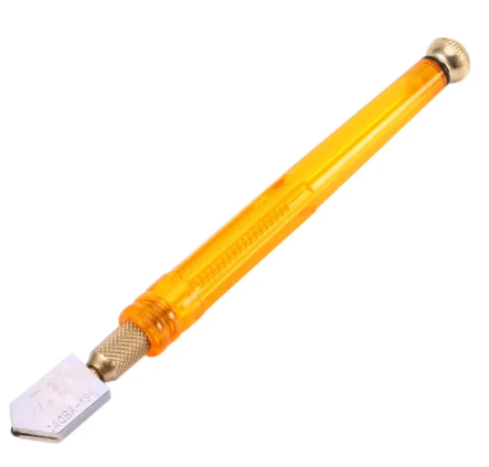 อุปกรณ์ตัดกระจกทรงปากกาใช้สำหรับตัดกระจกต่างๆโดยลักกษณะแบบลูกกลิ้งกรีดบนตัวกระจกทั้งแบบบางหรือแบบหนามีช่องสำหรับใส่น้ำมันหล่อลื่นหรือน้ำมันสน,น้ำมันก๊าด, ซึ่งจะช่วยให้การตัดกระจกได้ง่ายดายยิ่งขึ้นหรือจะใช้น้ำมันสนทาบนเนื้อกระจกตามแนวที่ต้องการตัดเพื่อเปิดหน้ากระจกก็ได้เช่นกันใช้งานได้สะดวกแข็งแรง,ทนทาน