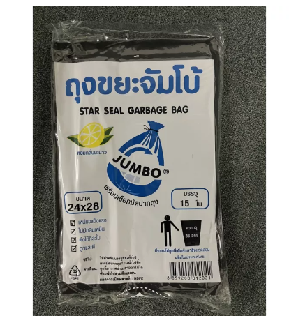 ถุงขยะจัมโบ้ ถุงดำ ถุงขยะ เกรดA พร้อมเชือกมัดปากถุง หอมกลิ่นมะนาว JUMBO Garbage Bag ชนิดบางเหนียว
