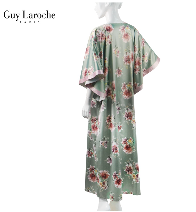ชุดนอน แบรนด์ Guy Laroche เดรส กระโปรงยาว ทรงค้างคาว คอวี ไหล่ล้ำ ชุดอยู่บ้านแม่ชอบมาก เนื้อผ้าซาติน เนียน นุ่ม ลื่นเย็นสบาย ไม่ร้อน เดรสคุณนาย