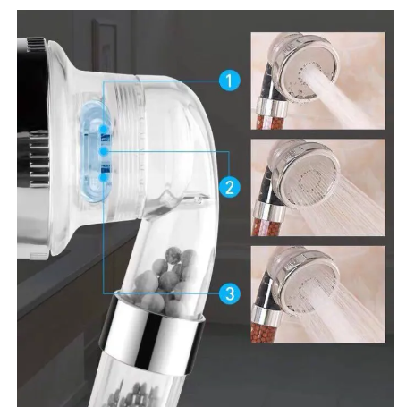 ข้อมูลเฉพาะของ ฝักบัวสปา ฝักบัวหิน ฝักบัวเกาหลี น้ำแร่ไอออน ฝักบัวกรองน้ำ Shower Head spa 02 ปรับได้ 3 ระดับ