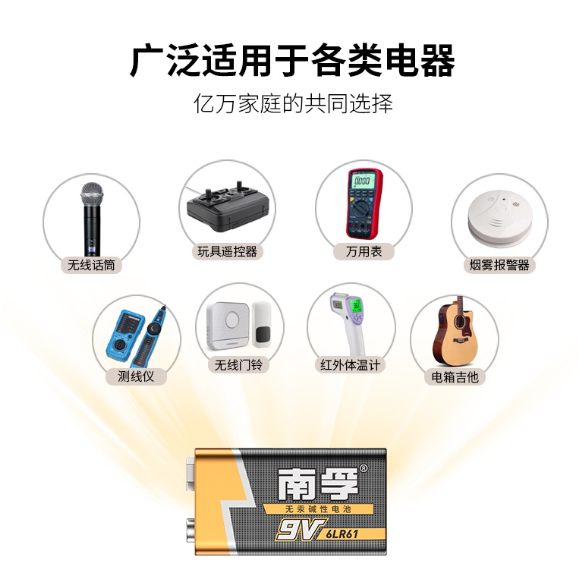 ยี่ห้อ: Nanfu รุ่น: 6LR61 ข้อมูลจำเพาะของแบตเตอรี่: อื่นๆ ผู้ผลิต: Fujian Nanping Nanfu Battery Co., Ltd. จำนวนเซลล์: 1;