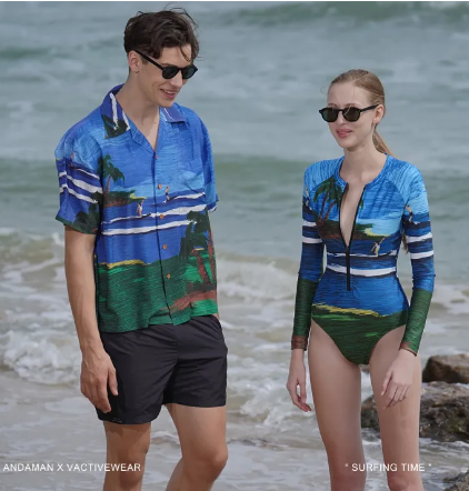 ข้อมูลเฉพาะของ SURF VACATION COLLECTION V ACTIVEWEAR X ANDAMAN BODYSUIT ชุดว่ายน้ำแขนยาวซิบหน้า มีฟองน้ำในตัวผ้าหนา กัน UV UPF 50+ ซับในทั้งตัว
